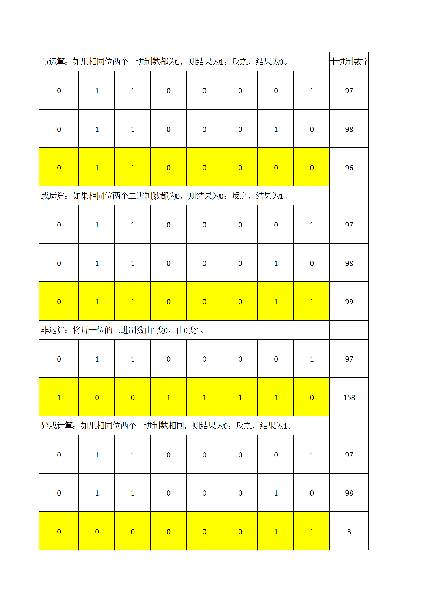 以下是二进制运算过程: