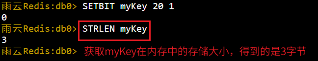 这里解释一下为什么使用SETBIT命令时,返回0或1。这里我已上图中SETBIT myBitmap 3 1为例:
