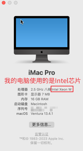 这里需要留意一下处理器信息,这里我的电脑使用的是Intel芯片: