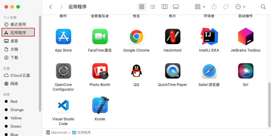 1. 打开程序最左边的访达,在最左侧点击应用程序: