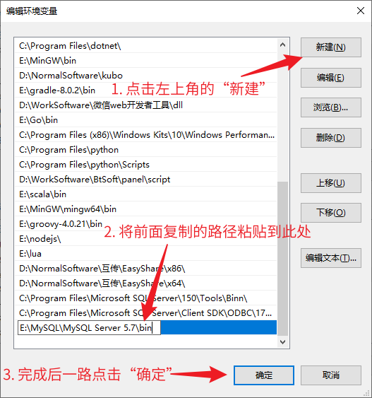 6. 按照下图所示操作,粘贴前面复制的MySQL安装路径,然后一路点击确定即可。