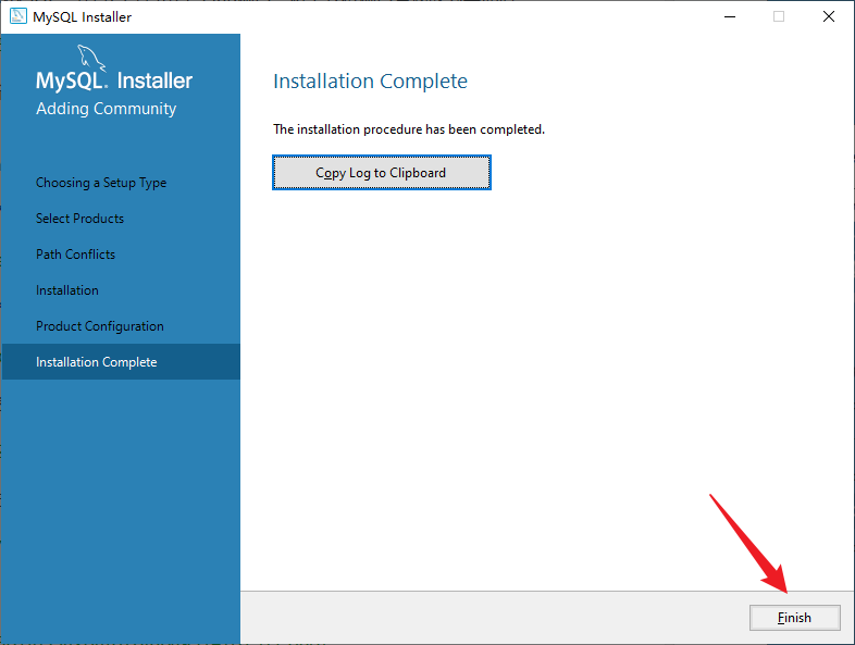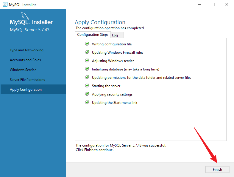 14. 出现下图信息,说明MySQL配置成功,点击Finish完成配置: