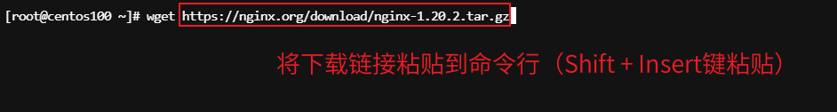 3. 使用wget命令,将下载链接粘贴到命令行,下载 Nginx 安装包,效果图如下: