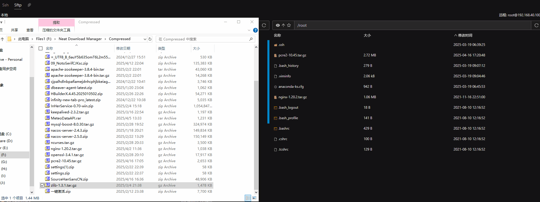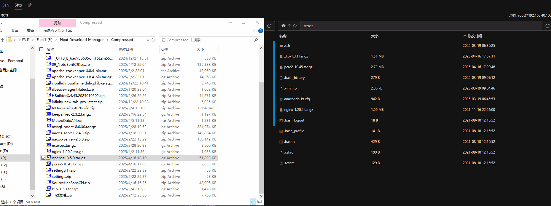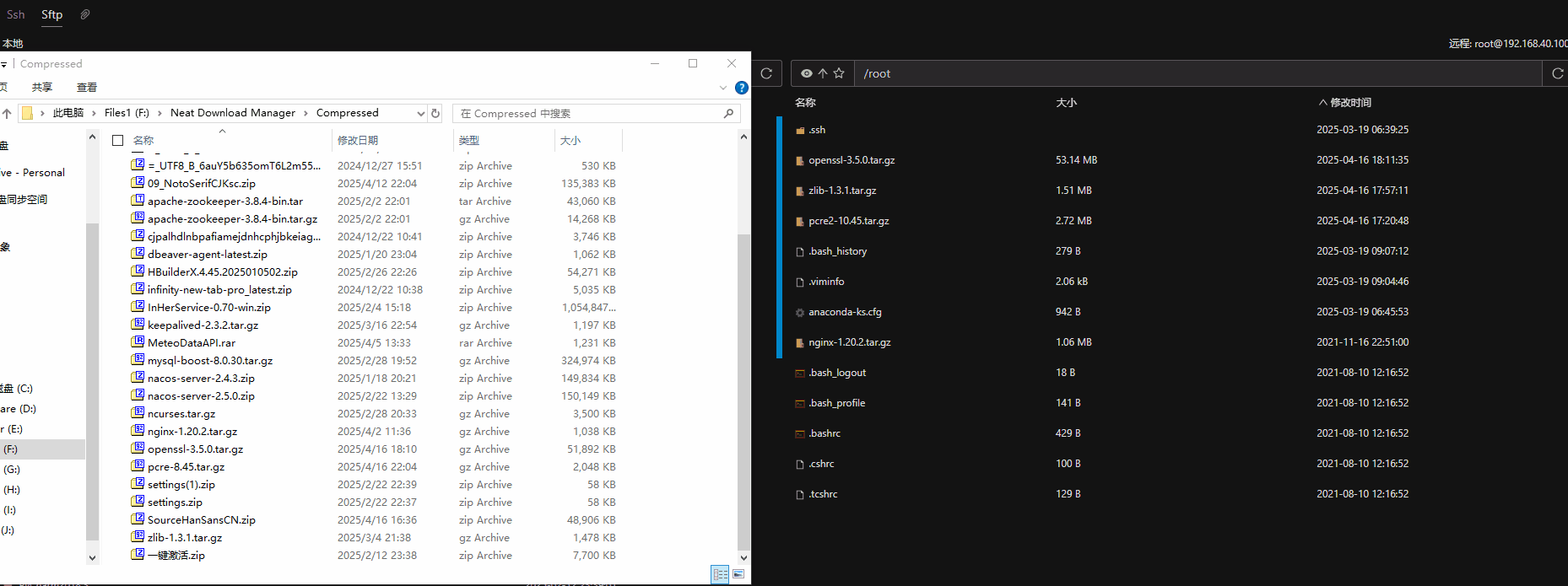 3. 使用 Electerm 远程连接 Linux 服务器,连接成功后,点击左上角 SFTP 将安装包远程传输到 Linux 服务器上:
