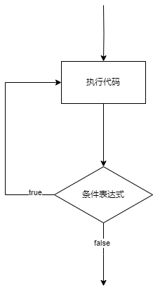 执行流程:先执行do内部的代码,内部代码执行完毕以后,再对while中的条件表达式进行判断,如果条件表达式为true,再次进入do内部执行代码;如果条件表达式为false,此时就跳出do-while循环。
