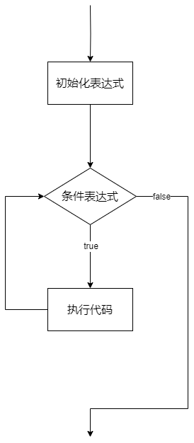 for循环的时候,先执行初始化表达式,然后根据条件表达式结果进行判断,如果条件表达式为true,则进入for循环内部执行代码,如果条件表达式为false就跳出for循环。在执行完for循环内部代码以后,会针对前面初始化表达式的变量进行迭代操作(常见的是变量相加/相减操作)。 - 后续执行