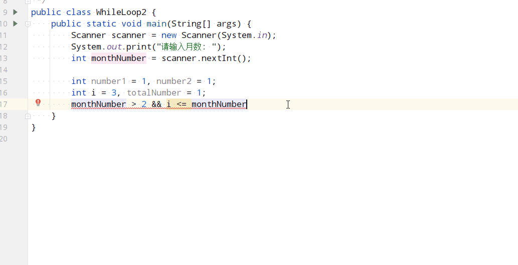 当然,循环只是解决斐波那契数列的一种方式,它还可以使用递归的方式解决。后续讲到方法的时候还会讲到这个问题的递归解法。