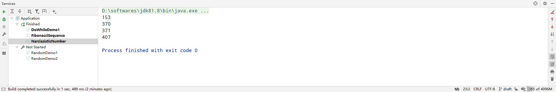 运行结果即$[100, 999]$以内的所有水仙花数: