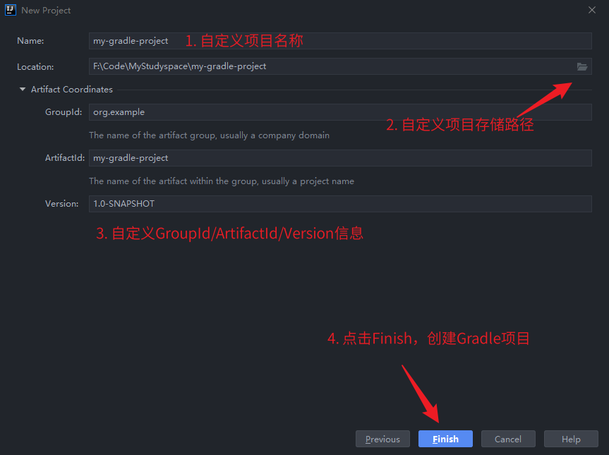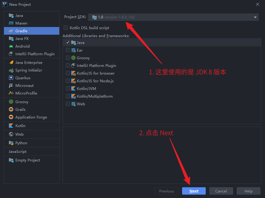 1. 按照下图操作,创建一个 Gradle 测试项目: