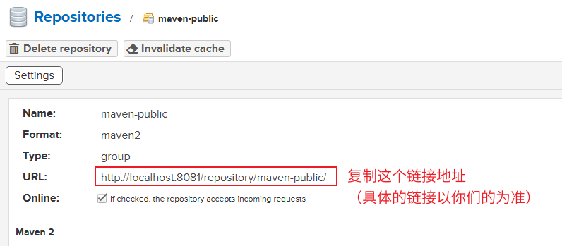 - 打开 Nexus 控制台,按照下图所示复制仓库地址: