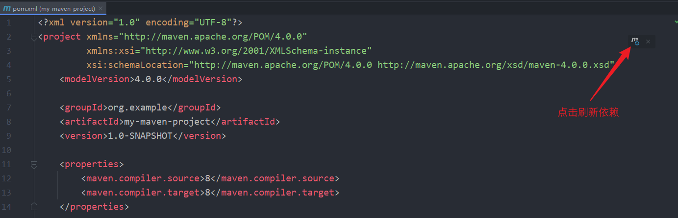 4. 此时右上角会出现一个 Maven 刷新按钮,点击此按钮就会下载依赖: