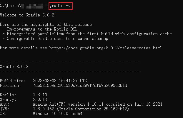 输入gradle -v并执行即可查看Gradle的安装信息 |