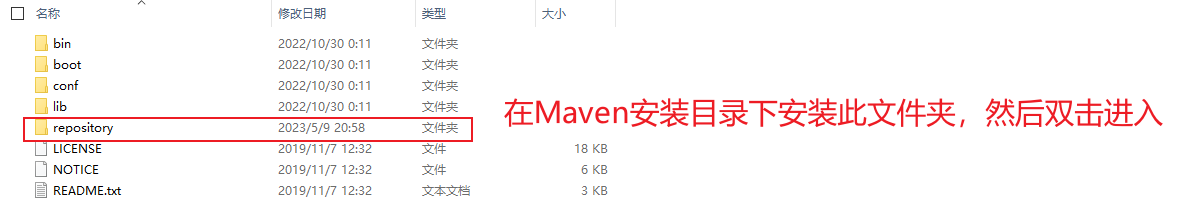 10. 打开Maven的安装目录,在这里新建一个repository文件夹,创建完成后,进入此文件夹,复制上述路径。