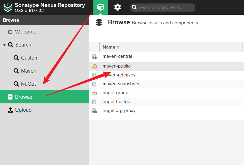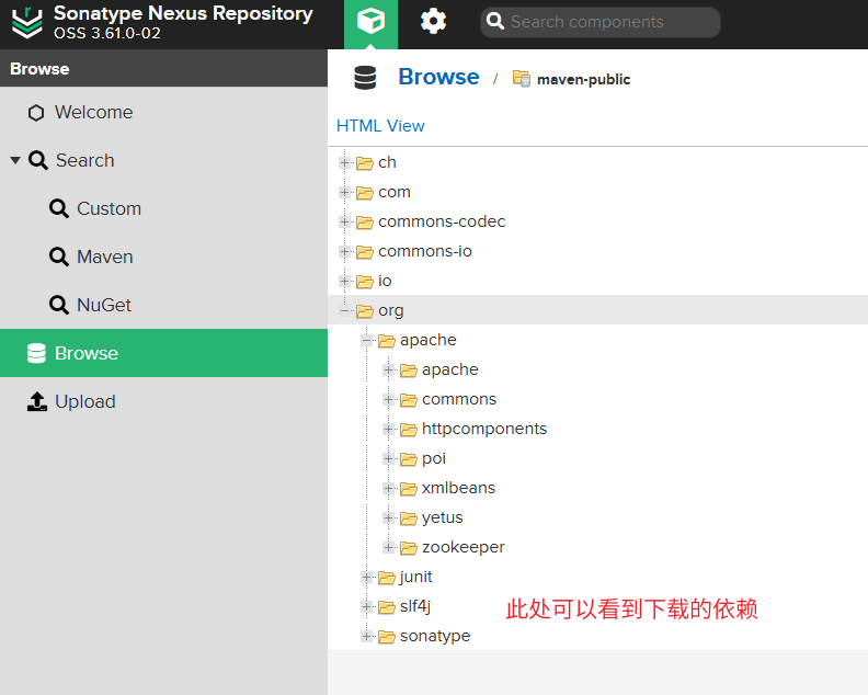 6. 下载完成,打开 Nexus,按照下图所示操作,可以查看到依赖下载到了 Nexus: