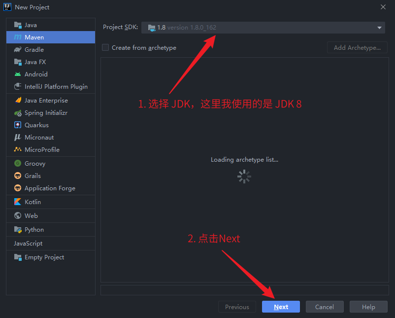 1. 按照下图操作,创建一个 Maven 测试项目:
