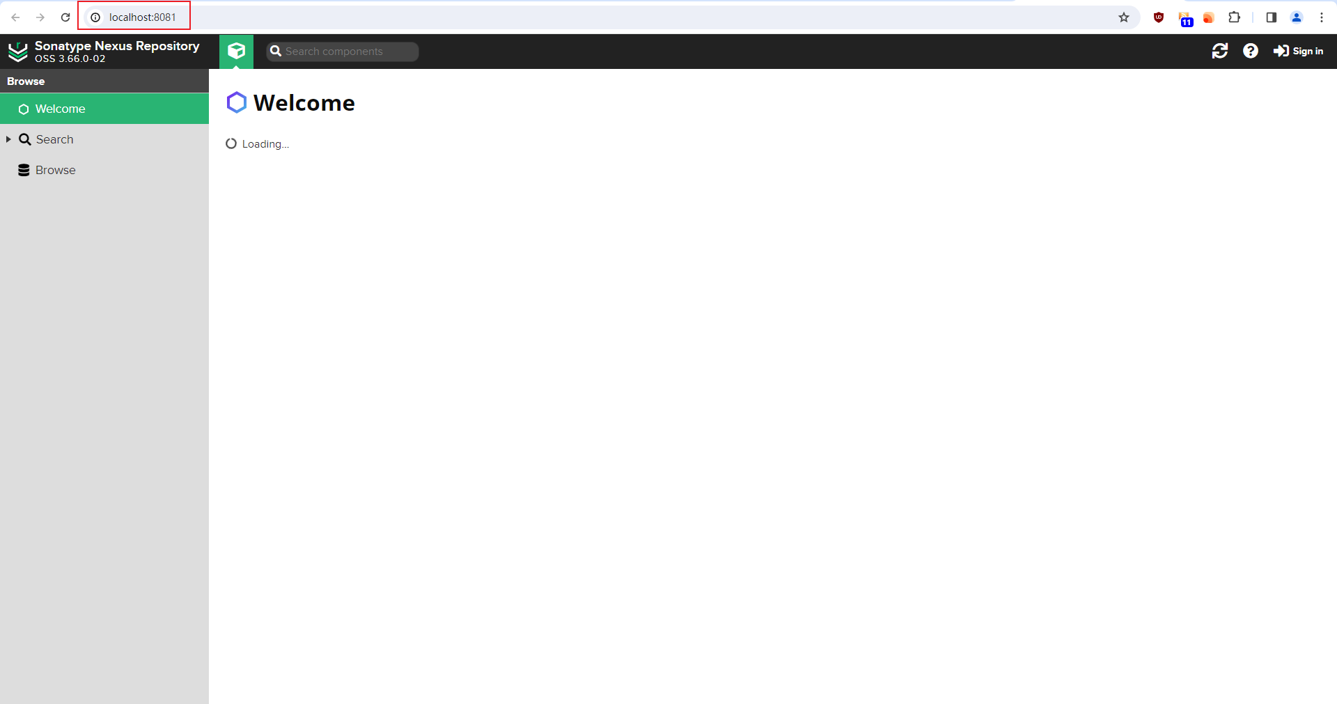 2. 打开浏览器,在上方搜索框中输入http://localhost:8081,即可打开Nexus控制台欢迎界面: