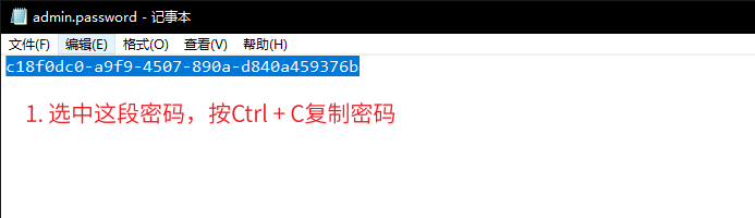 5. 根据上一步提示框中的路径(如下图),使用记事本打开admin.password文件: