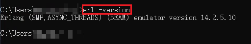 如果出现 Erlang 的版本信息,就说明 Erlang 环境变量配置成功!