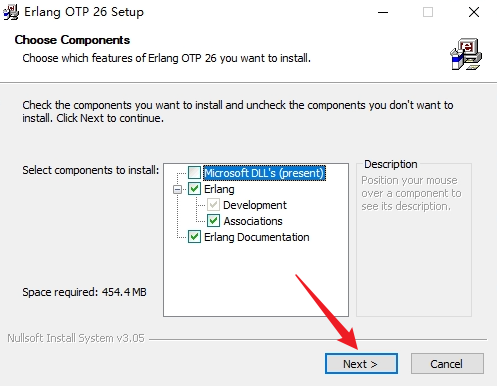 1. 打开下载好的安装包。选择组件,按照默认的选择即可,点击 Next: