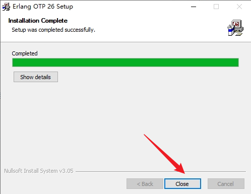5. 安装完成,点击 Close 关闭安装界面: