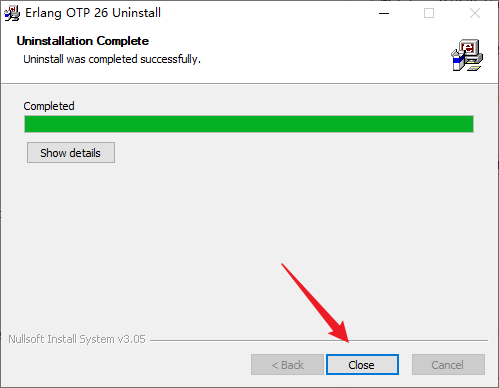 4. 卸载完成,点击 Close: