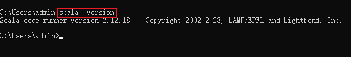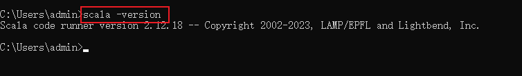 10. 验证Scala环境变量是否配置成功:按Win和R键,输入cmd,打开命令行窗口,输入scala -version,出现Scala版本信息就说明Scala环境变量配置成功了!