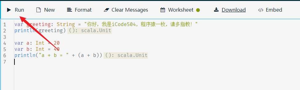 1. 浏览器打开Scala官网在线编程界面:点我查看