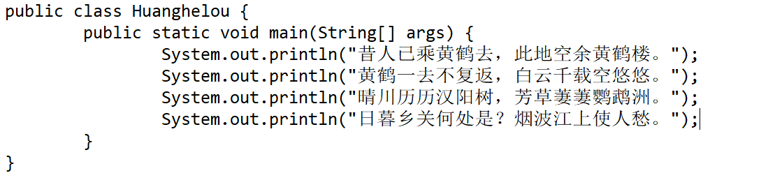 我的答案是:当然可以!结合上述问题,给大家再举个例子:比如我想通过Java程序输出唐代诗人崔颢的《黄鹤楼》