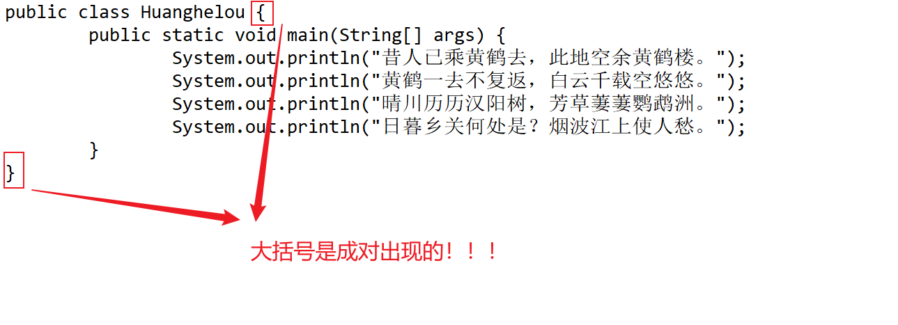 4. 大括号、中括号、小括号一定要配对出现。写代码的时候不要忘记!