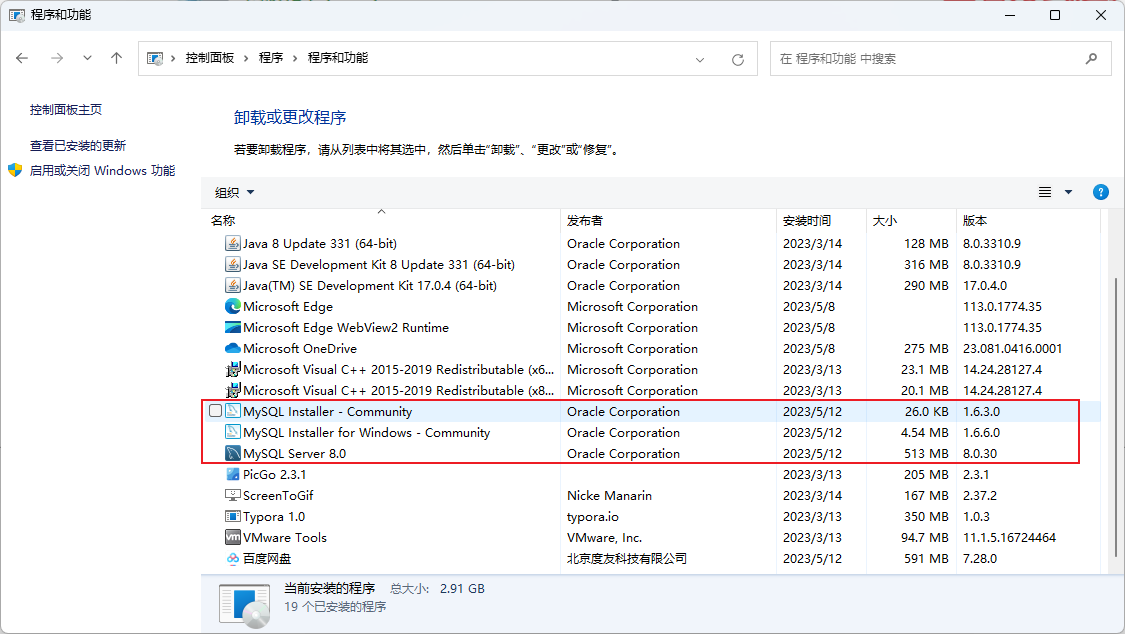 5. 卸载界面不存在MySQL相关程序,说明MySQL卸载成功。