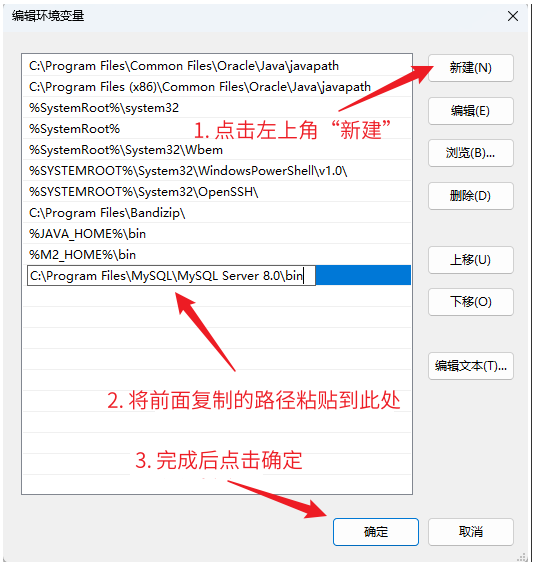 - 如何进入环境变量,请参考第三部分配置MySQL环境变量的前5步。