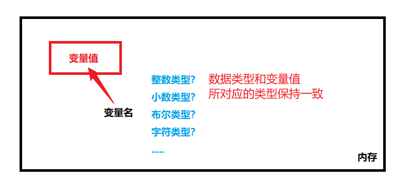 变量三要素:数据类型、变量名和变量值。在内存中的关系图如下: