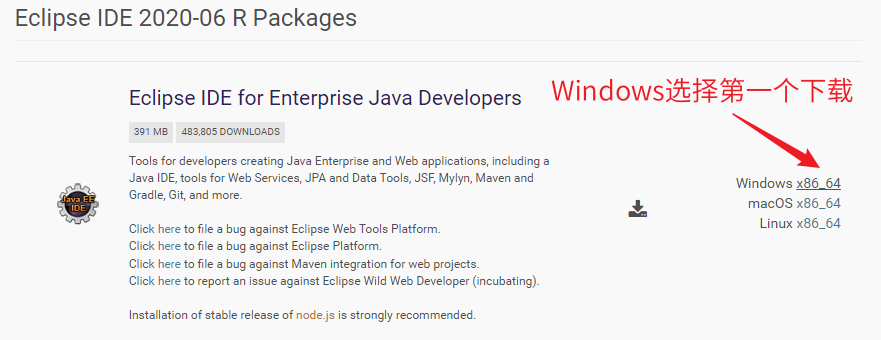 3. 找到Eclipse IDE for Enterprise Java Developers,在右侧选择Windows版本下载: