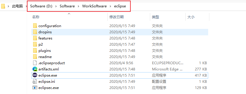 4. 下载完成后,将Eclipse解压到一个你熟悉的位置(建议文件路径是全英文的),这里我解压到了D盘:
