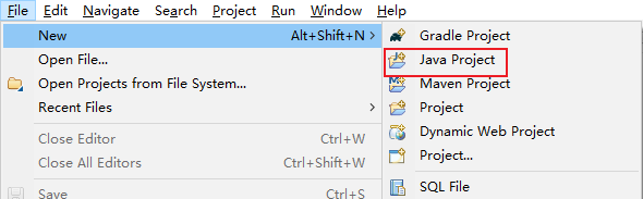 1. 在上方菜单栏点击File,选择第一个New(或者按ShiftAltN),选择Java Project: