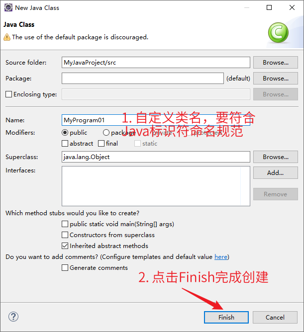 6. 按照下图所示创建一个Java文件,注意文件名(类名要符合标识符命名规范):