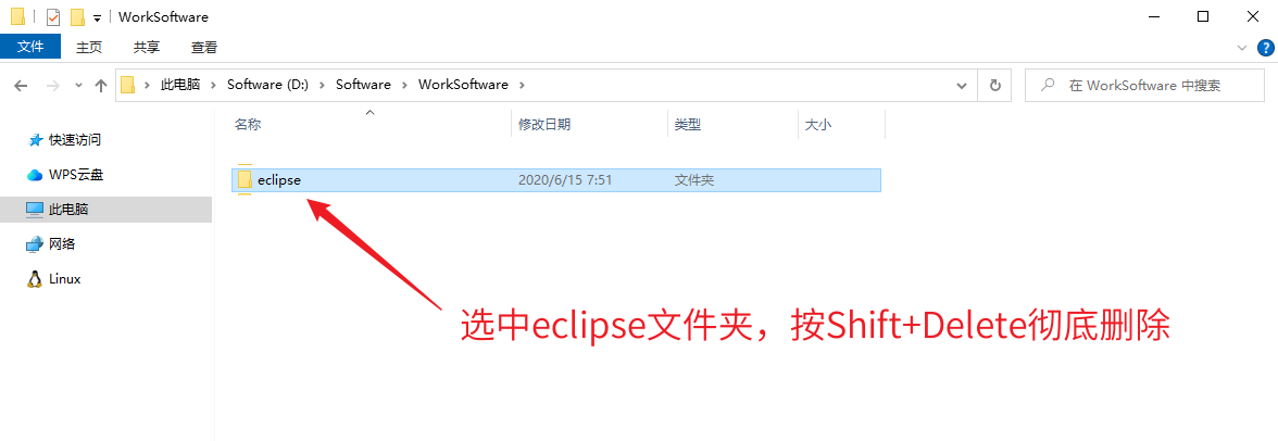 1. 找到Eclipse安装目录,按ShiftDelete彻底删除(不经过回收站):