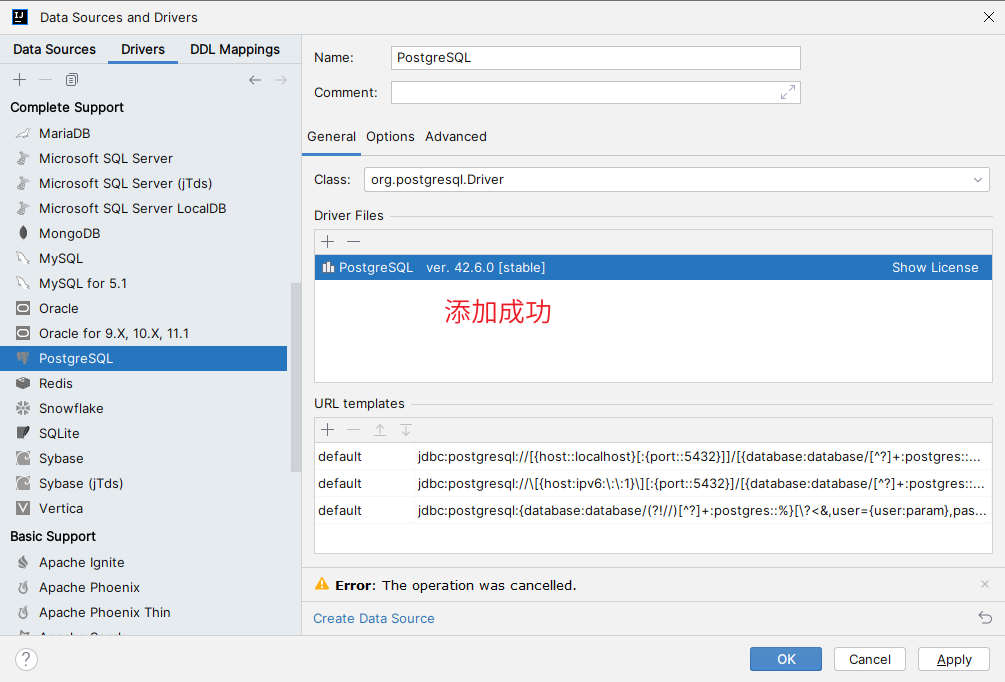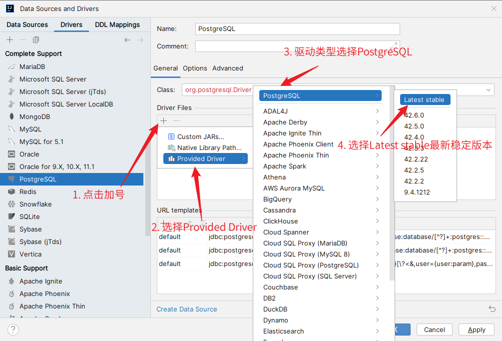 3. 在Driver Files处,点击加号,选择Proviced Dirver,数据库驱动选择PostgreSQL官网最新稳定版本: