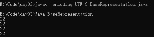 从运行结果我们可以看出:输出的数字无论是哪一种进制,默认都会转换为十进制的数字22。