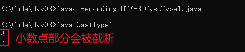 情况一:浮点类型转换成整数类型时,会出现精度损失,即小数点会被截断(不会四舍五入),只保留整数部分。
