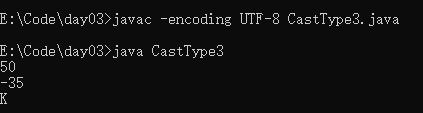 情况三:**char类型向更高数据范围(例如:int、long等)转换时,以数字的形式输出。**