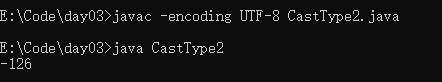 很明显,输出结果并不符合我们的预期,而是得到了值-126,接下来我们从底层角度进行分析: