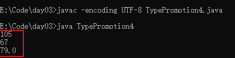 为什么d2的输出结果是8.0?由于8默认为int类型,给变量d2赋值时,int类型的数值会向范围更大的double转换(自动类型提升,在后面文章会讲到),而double是浮点类型,后面需要跟随小数点,默认会在后面加上.0(一位小数),即输出结果为8.0。同理,f3的输出结果为6.0。