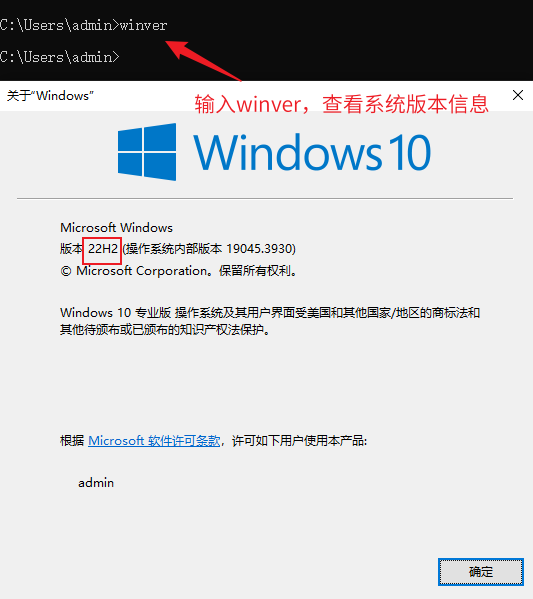 1. 按Win和R键,输入cmd并点击确定,进入命令行窗口。在命令行中输入winver查看操作系统版本,请确保操作系统是Windows 10和Windows 11,并且版本在2004版本以后,这里我的操作系统是22H2版本,符合安装要求: