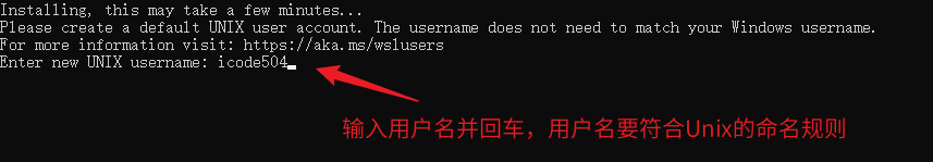 6. 等待了1~3分钟以后,此时Ubantu系统要我们自己输入用户名(英文名称要符合Unix的命名规则,命名规则可以自行百度):