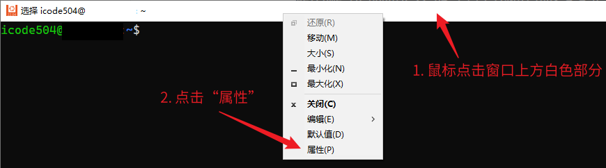 2. 鼠标右键点击WSL上方白色部分,点击属性,可以修改界面风格: