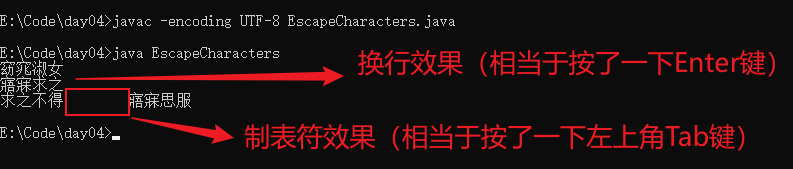 \n能够换行(相当于按了一下Enter键);\t具有制表符效果(相当于按了一下Tab键);