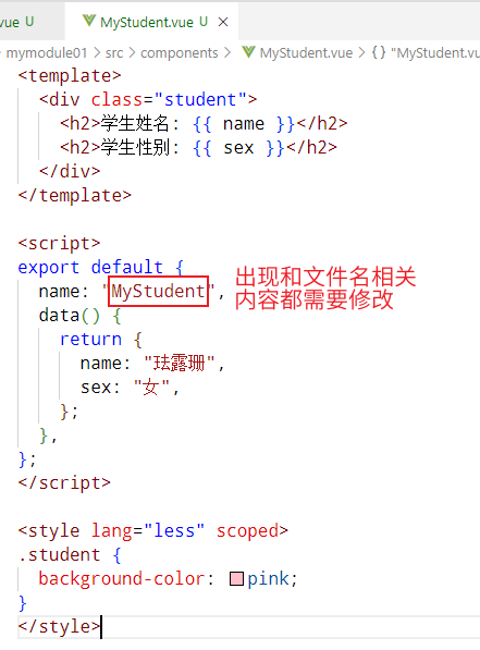 需要注意的是,文件名修改后,文件中出现和文件名相关的内容也需要修改: