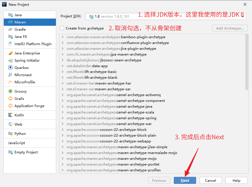 以下提供了Maven和Gradle两种方式创建项目,任选其一创建项目即可。