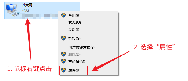 3. 鼠标右键点击网络,菜单倒数第二个,选择属性: